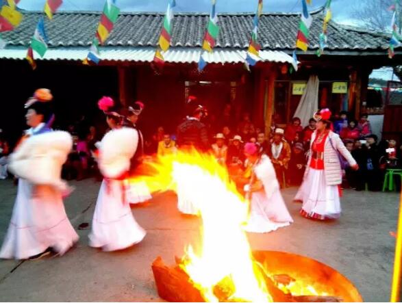 晚上,是最激动人心的篝火晚会,家人们聚集在四合院里,院子中间燃着篝火,盛装的摩梭小伙子和少女围着篝火跳着唱着,充满着别样的风情。期间,九尾猫家人们被她们的热情所感染,纷纷加入到他们中,欢歌笑语充斥着整个四合院。