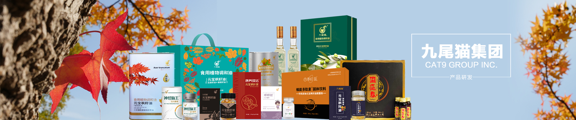 目前,九尾猫集团已推出多款元宝枫系列产品。其中纯油系列产品是利用团队最新科研成果,革新传统生产工艺,制取100%元宝枫籽油纯油,更纯粹;凝胶糖果及调和油系列是以元宝枫为基础原料,同时在其它木本植物中萃取珍稀成分,去芜存青,结合科研配比,蕴含更多元的营养素;神经酸系列则是团队技术攻关的最新成果,产品中富含的神经酸成分,是世界科学家公认的、能修复疏通受损大脑神经通路、神经纤维并促使神经细胞再生的双效神奇物质。